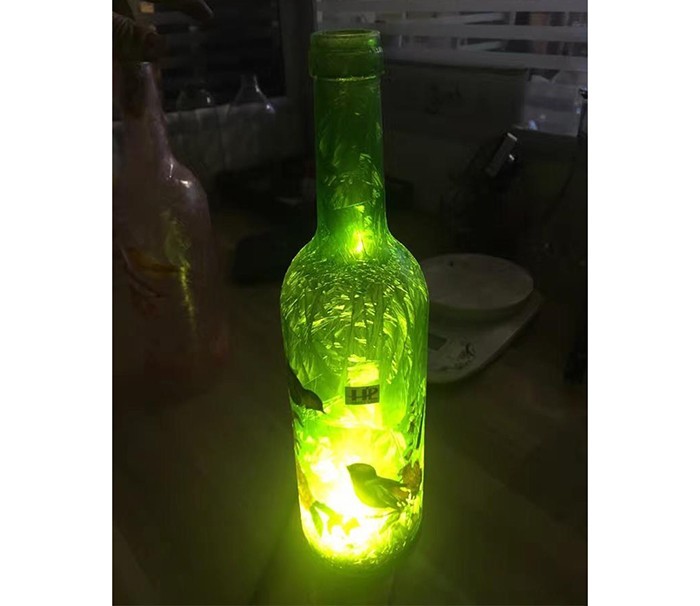 蒙砂酒瓶是在制品玻璃上,粘附一定大小面積的玻璃色釉粉,玻璃瓶廠經(jīng)過580~600℃的高溫烘烤,使玻璃色釉涂層凝結在玻璃外表,并顯現(xiàn)出具有與玻璃主體不同顏色的一種裝飾辦法。粘附玻璃色釉粉,可用排筆涂刷,亦可用膠輥滾涂。經(jīng)過絲印加工,能夠得到蒙砂面的樓空圖案。 其辦法是:在玻璃制品外表上,絲印一層由阻熔劑構成的圖案紋樣。